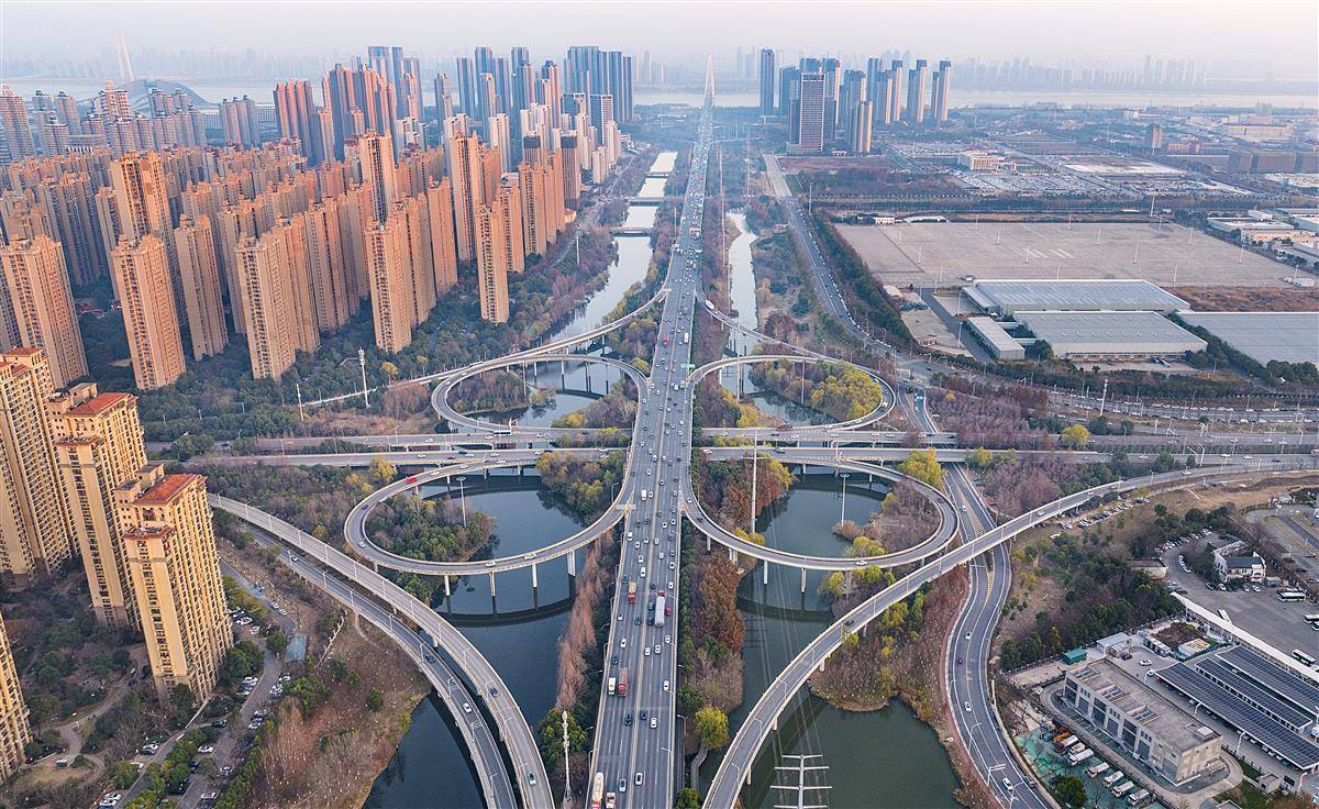 1月12日,从高空俯瞰武汉梅子立交桥好像一个巨大的中国结。
