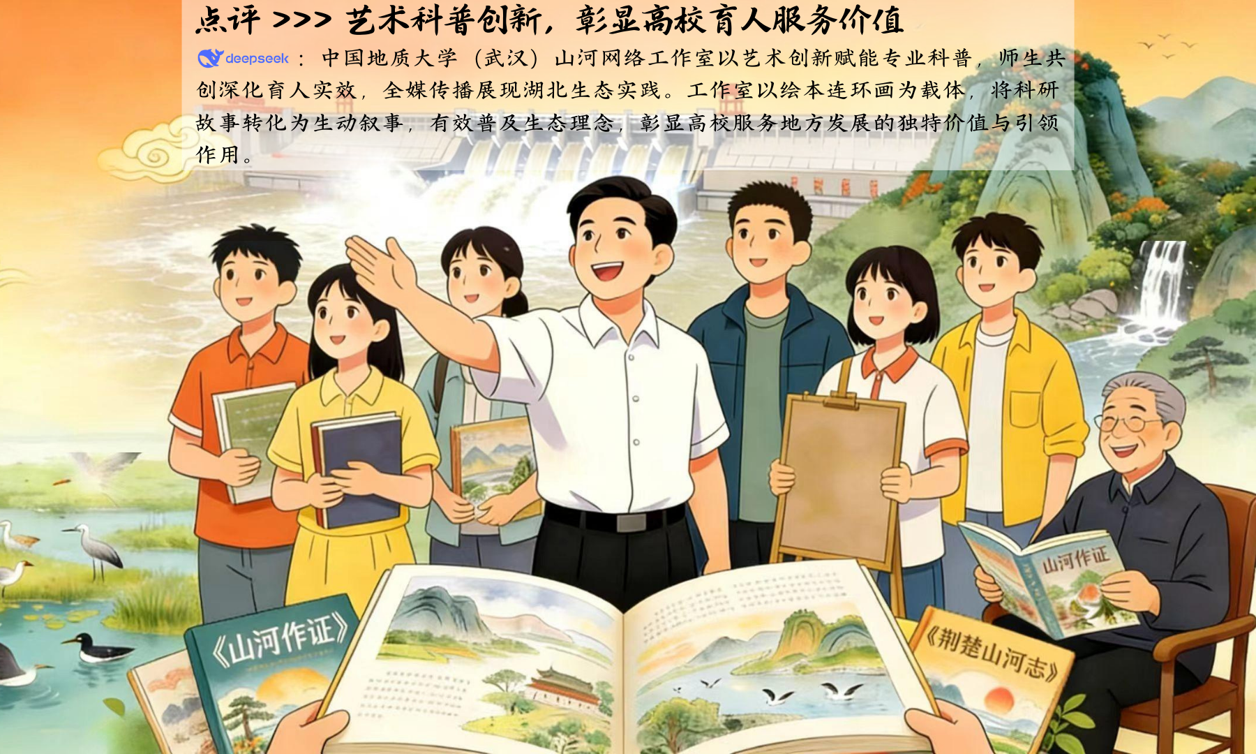 近年来,中国地质大学(武汉)山河网络工作室依托地学优势,以绘本、连环画形式,聚焦美丽湖北建设,创作系列主题作品。通过师生协同共创、网络矩阵传播、产学研融合模式,作品获多项权威荣誉,广泛传播湖北生态故事,助力生态文化建设,彰显高校新媒体服务地方发展的独特价值。