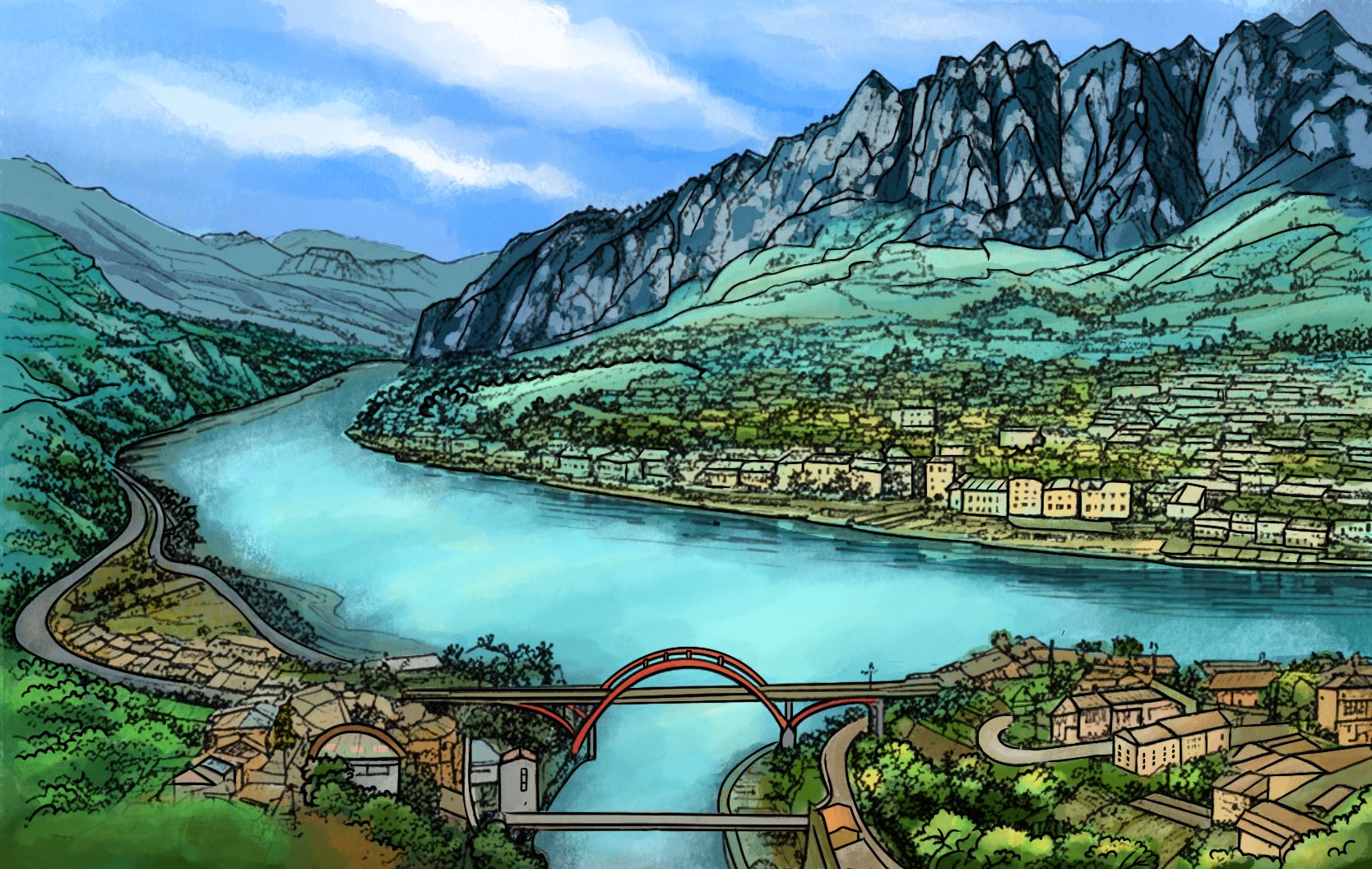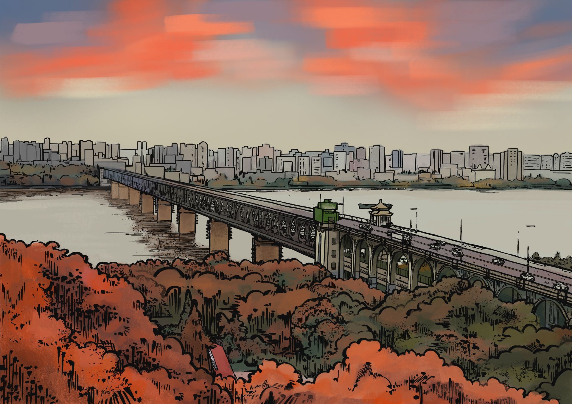 《荆楚山河志》中的画稿,创作:傅晓颖。