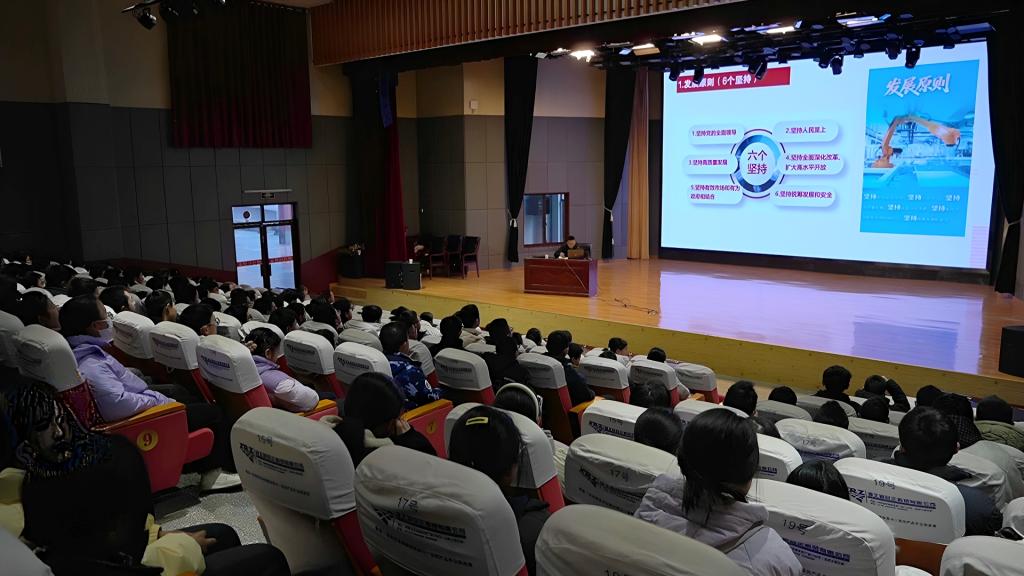 在鹤峰县思源中学,向驰副教授围绕“以党的二十届四中全会精神为指引 将青春融入国家发展大局”主题进行宣讲。他结合自身求学经历,围绕党的二十届四中全会擘画的“十五五”规划发展蓝图,阐释了青年成长与国家发展的紧密联系,将国家战略与鹤峰茶叶产业链、生态建设等地方实践相结合。他以湖北民族大学优秀学子返乡奉献的事例引导同学们胸怀理想、练就本领、勇担使命,把个人成长融入家乡建设与民族复兴的洪流。