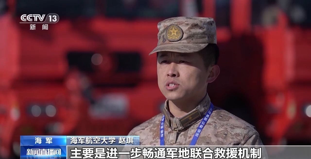 海军航空大学 赵琪:这次演练,主要是进一步畅通军地联合救援机制,规范应急响应力量调配和处置流程,有力确保能够在真实险情中,最大限度地保证人员的生命安全,降低财产损失,下一步,我们将进一步探索军地联合处置方法,充分发挥协同联动优势,不断提升军地应急响应能力。