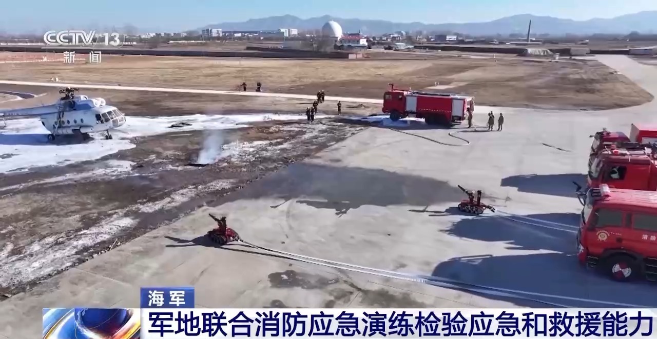 近日,海军航空大学某部联合当地救援力量开展军地联合消防应急演练,检验军地消防、医疗应急和救援能力。