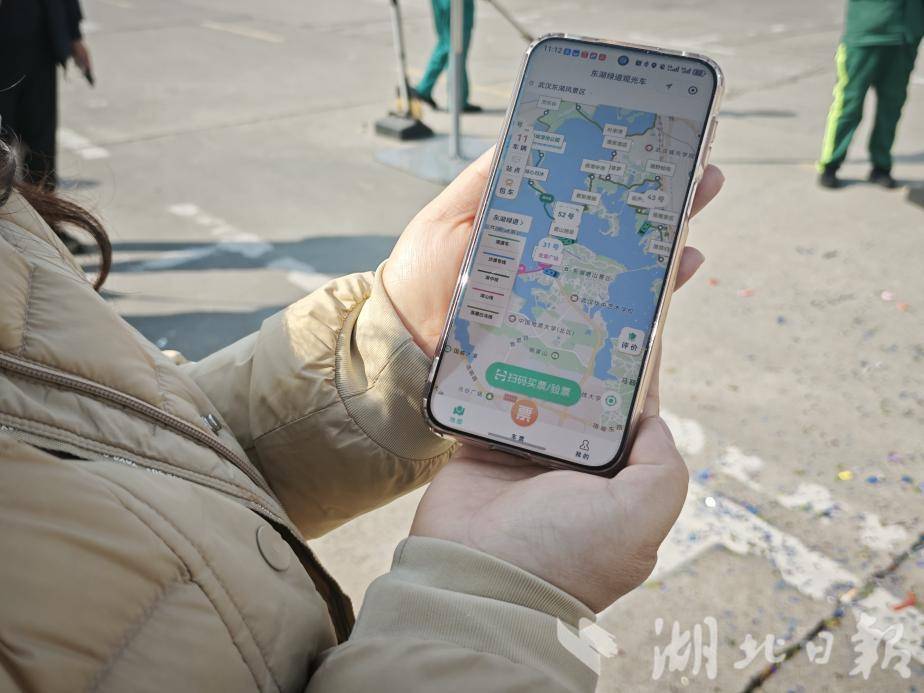 当天,来自辽宁的游客赵芳体验了从磨山到楚风园广场的智慧观光车。她兴奋地表示:“出门玩最怕等车和排队,现在一扫码就能上车,还能实时看到车到哪儿了,心里有底多了。东湖真的很大,没有观光车还真玩不过来。”