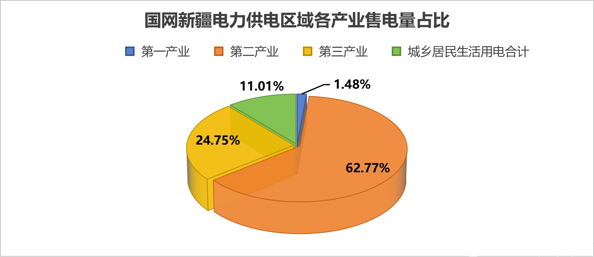 国网新疆电力供电区域各产业售电量占比示意图。国网新疆电力有限公司供图