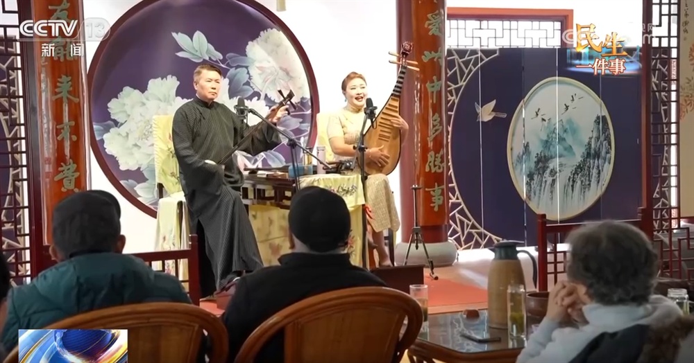 家住江苏苏州姑苏区双塔街道的彭德宏老人今年83岁,每天午饭过后,他都会按时出门,去“公园”听评弹。