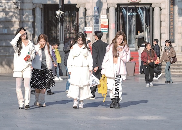 13日是“三九”第六天,太阳过度热情为湖北供暖,17个国家站最高气温超20℃,五峰以24.7℃暖破当地1月最高气温纪录。预计未来三天,全省晴暖如春,14日中东部最高气温将升至24℃。江城街头暖意融融,行人薄衫与棉服同框,“乱穿衣”的景象在暖冬热烈上演。 楚天都市报极目新闻记者李辉 宋枕涛摄