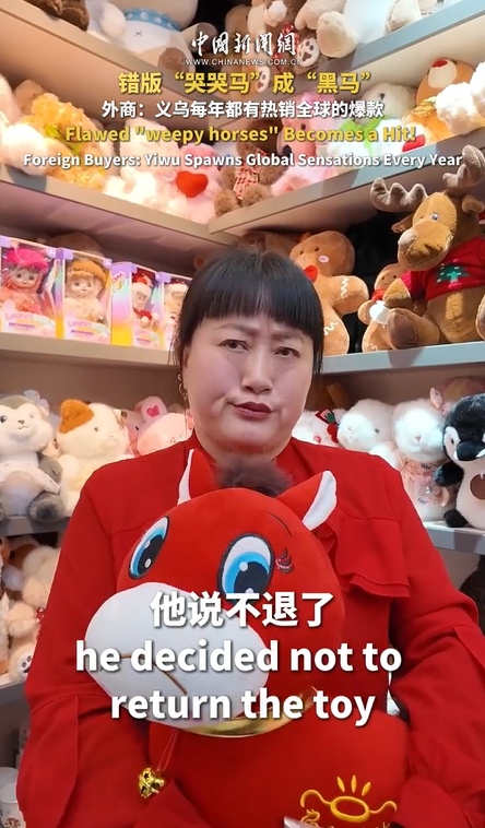 在浙江义乌,一款因错缝的“哭哭马”的公仔玩具在网络上意外爆火,走红后义乌老板快速反应,火速生产排单。如今,“哭哭马”一马难求、全网催单,就连外商也纷纷来打卡,他说“每年义乌都会有商品热销全世界”。从“残次品”到“隐藏款”,从失误变商机,“哭哭马”背后的义乌速度值得点赞!