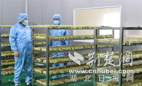 荆楚网(湖北日报网)讯(通讯员 肖蒙雨 陈博文)元旦刚过,湖北润物食品有限公司的生产车间内已是一片忙碌景象。自动化生产线高效运转,工人们熟练地将一箱箱封装好的蟠龙菜打包、装车,发往全国各地的年货市场。