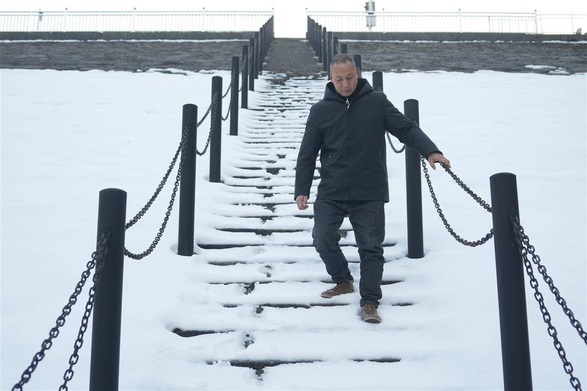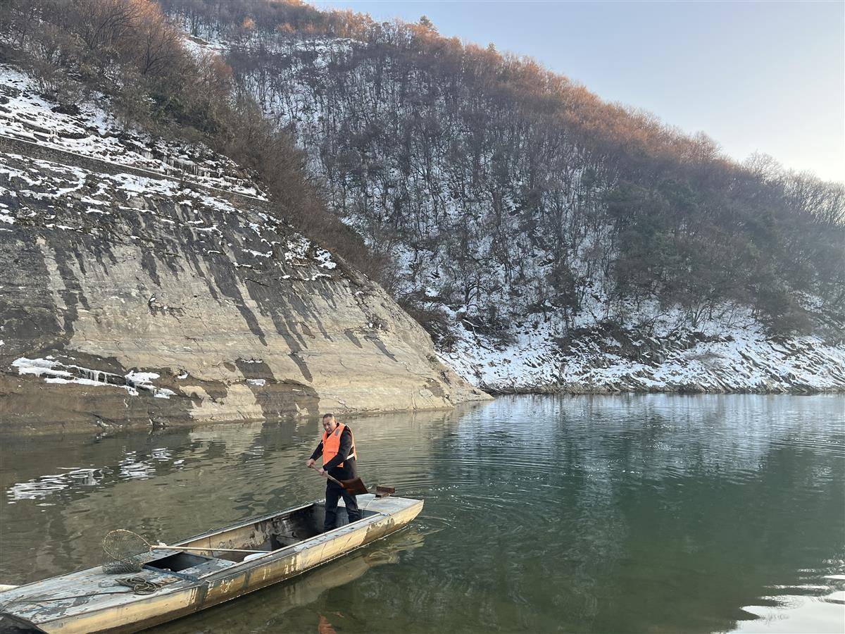 1月13日下午4时许,记者跟随谭大凡一起沿着四十二坝水库周边巡查,弯弯曲曲的水泥小道上,尚有不少积雪尚未融化,双脚踩在上面“咯吱”作响。