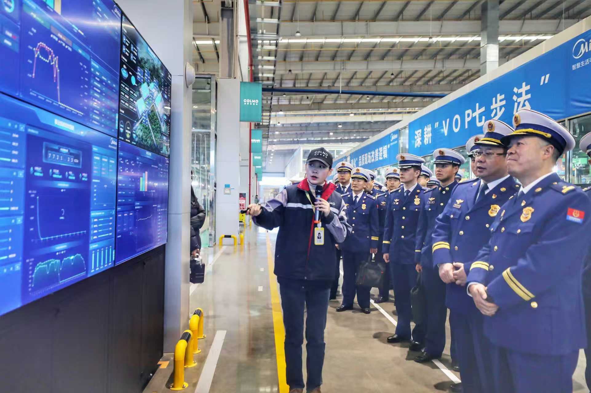 2025年1月14日,支队又将课堂搬到美的冰箱荆州“灯塔工厂”,为实景课堂换上“科技皮肤”:80%自动化率的钣金生产线飞速运转,AGV搬运机器人贴着脚尖穿梭,巨型屏幕上每秒“跳跃”一台冰箱的生产数据。工程师把数控加工“毫米级精度”与消防“秒级出警”类比:“设备讲究0.01毫米,我们讲究0.1秒——本质都是把简单动作做到极致。”指战员们围着机器人打转,在激光定位的“哒哒”声里,第一次把“新质生产力”写进学习日志。