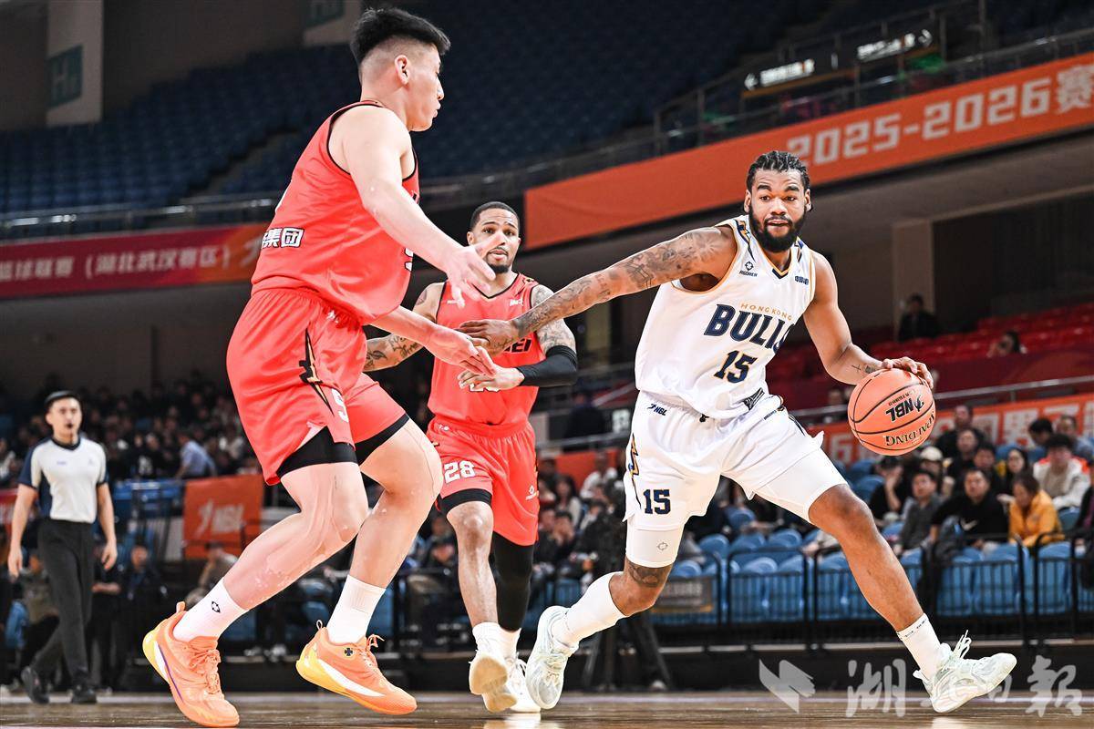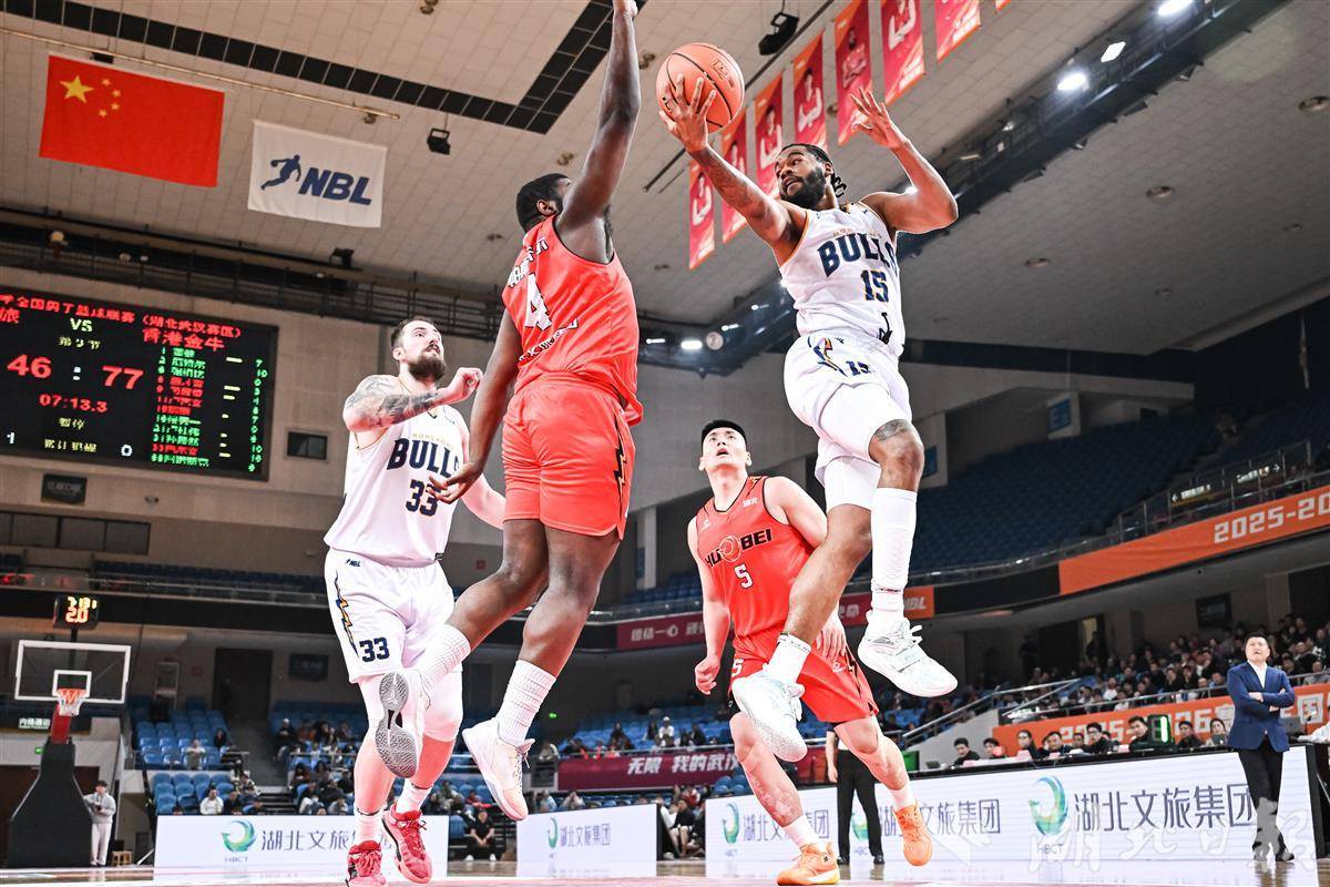 1月13日晚,在2025-26年全国男子篮球联赛(NBL)常规赛第九轮的比赛中,湖北文旅队坐镇洪山体育馆对阵香港金牛队,最终四节战罢,湖北文旅以83-118的比分不敌对手。(湖北日报全媒记者 任勇 摄)