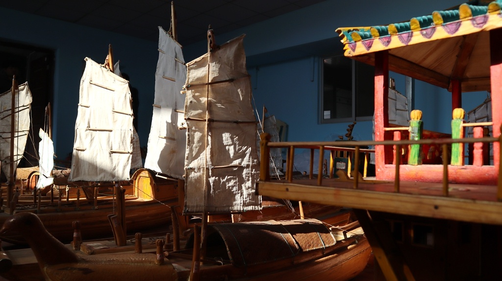 “做模型比做大型船只还要复杂。”杨国有坦言,模型用料更难找,制作工序也更精细。为了还原木船的原貌,他常常对着老照片反复琢磨,在记忆中打捞那些与木船有关的细节。
