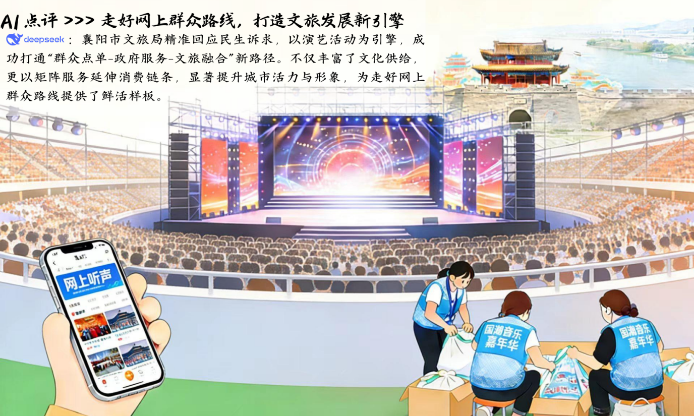襄阳主动关注网络民意,把群众需求作为工作出发点,让政务服务精准对接民生痛点,让发展成果惠及更多群众,初步走通了一条“网上听声-网下响应-资源整合-服务延伸-互动反馈”的文旅融合发展新路径,为持续繁荣文旅市场、走好新时代网上群众路线积累了宝贵经验。