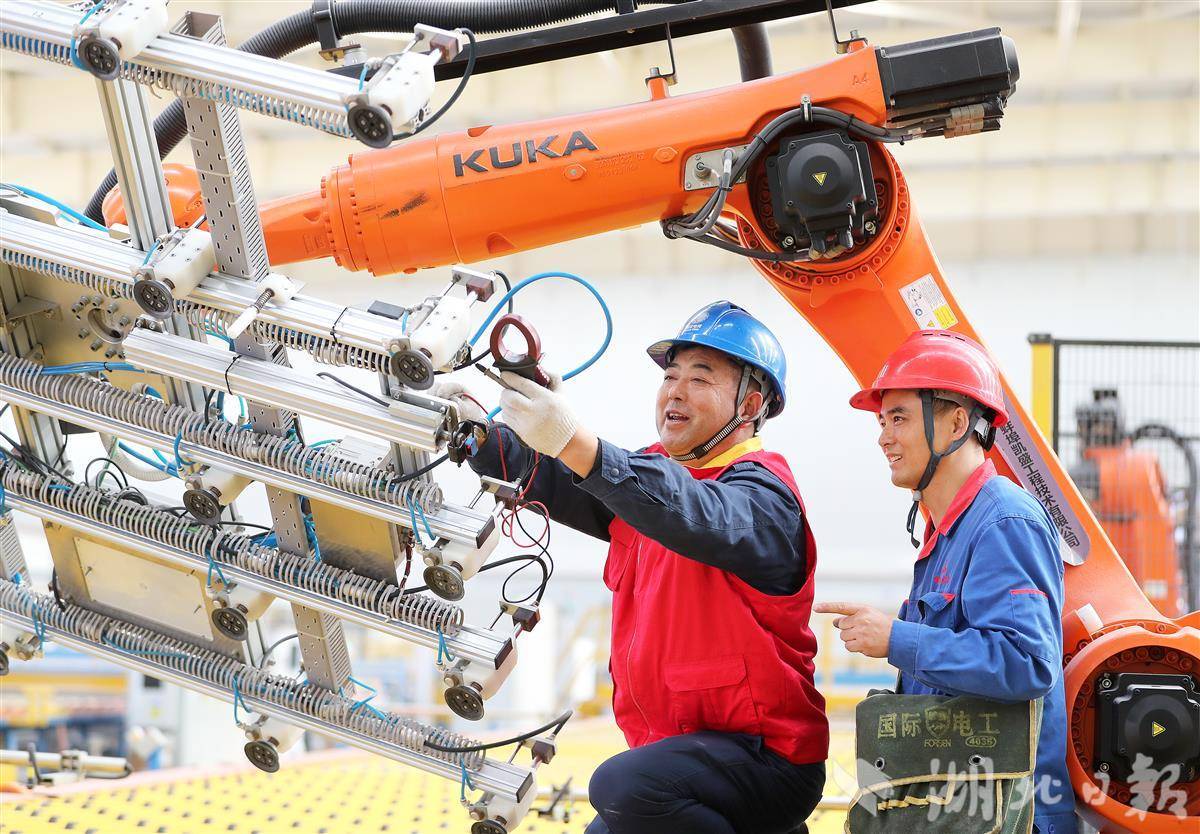 1月13日,湖北弘诺玻璃科技有限公司智能化生产车间内一派繁忙景象,光伏原片生产线全速运转,机械臂精准抓取搬运。与此同时,电力技术人员正联合企业工程师,对生产线设备进行细致巡检。