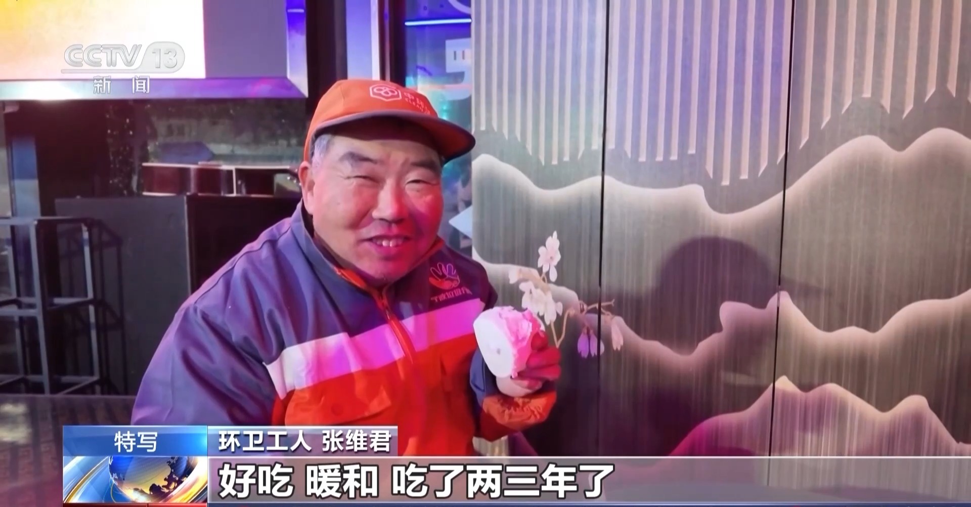 环卫工人 张维君:好吃,暖和,吃了两三年了。