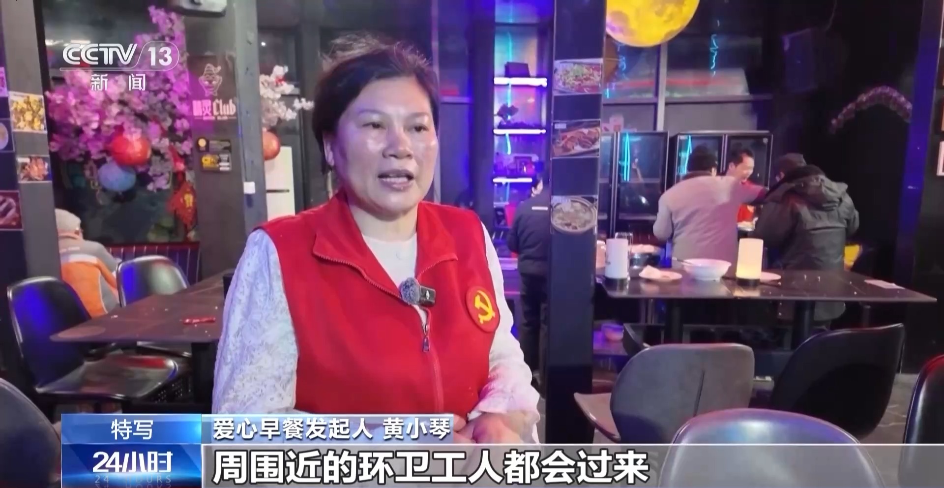 爱心早餐发起人 黄小琴:刚开始的时候,三四十个环卫工人,到后面新店来说,现在是一百多个了,周围近的环卫工人都会过来。我们煮鸡蛋的、蒸包子的、煮稀饭的,现在每天起码要六个人了。