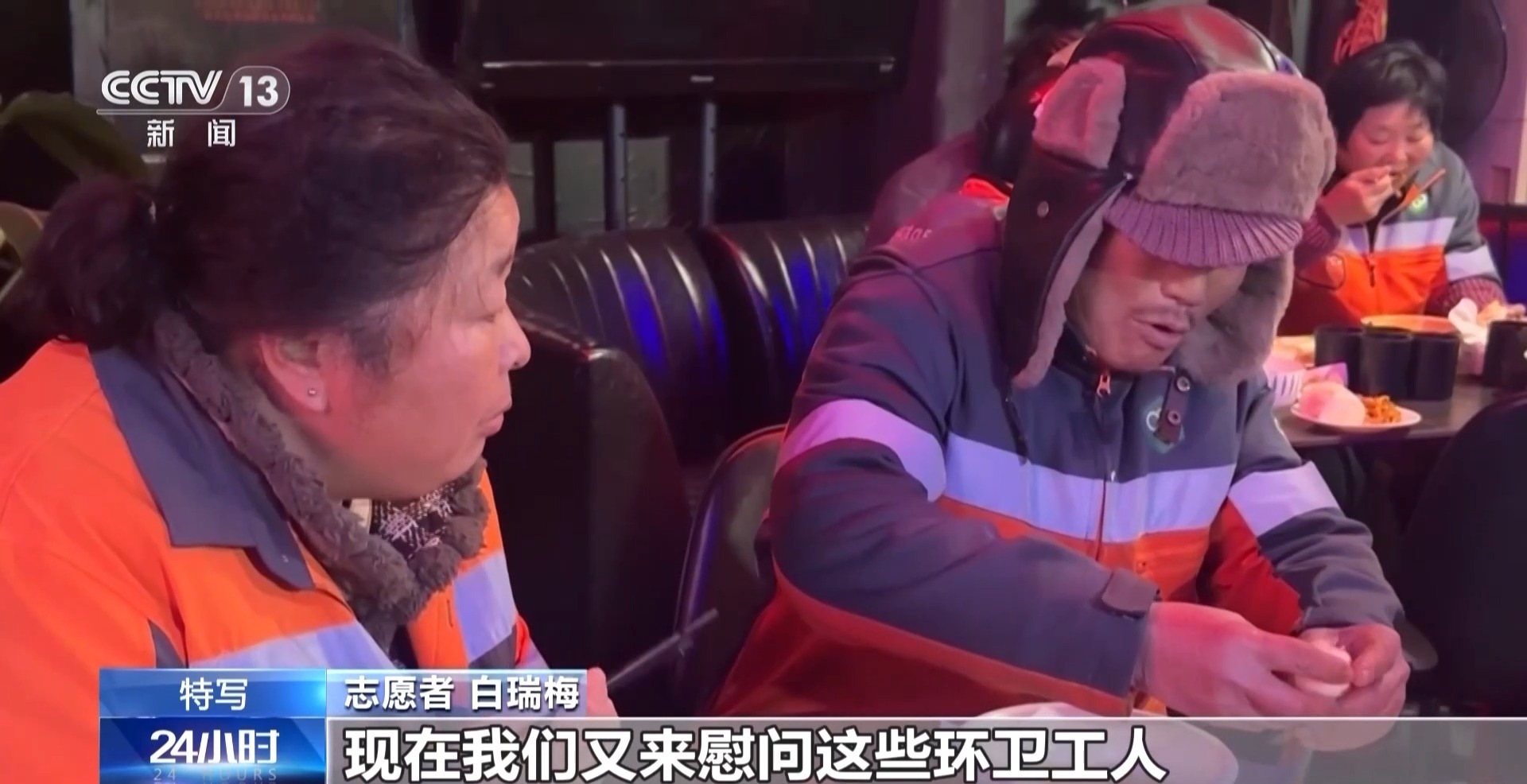 志愿者 白瑞梅:定期做一些包子、饺子,现在又来慰问环卫工人,让他们吃上爱心早餐。