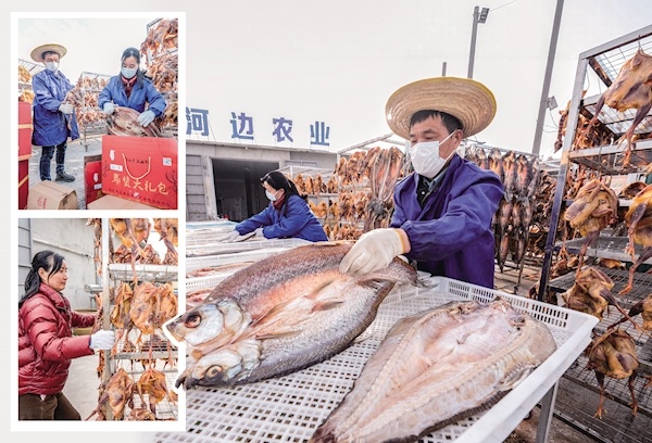 1月14日,阳光明丽,武汉市东西湖区柏泉街府河边农业合作社晒场上,一排排鱼、肉、鸡、鸭、鹅等腊货挂满货架,在冬日暖阳下油光锃亮,一阵阵浓郁的腊货香味随风飘逸。从武汉各城区赶到这里的市民穿行其中,感受万斤年货齐聚的震撼,于成百上千件腊货中,挑选着自己心仪的年味。楚天都市报极目新闻记者李辉摄