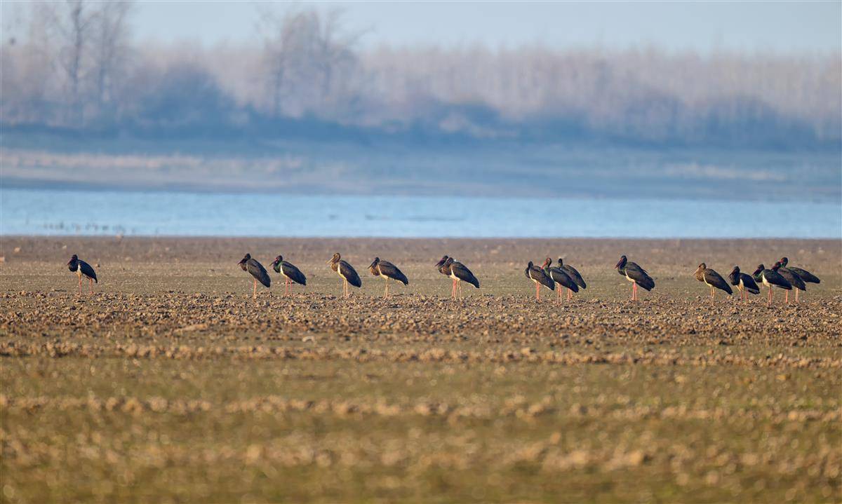 监利何王庙的黑鹳。(通讯员 朱兆泉 摄)