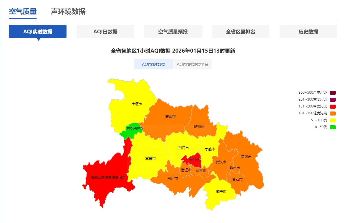 为积极应对本轮次污染天气,省生态环境厅加密研判,科学指导重点城市依法启动重污染天气预警应急,截至15日10时,宜昌、荆门、孝感、荆州、恩施(部分市县)等地已升级为橙色预警,另11城市为黄色预警。启动预警以来,省内污染物排放量逐步下降,1月14日预警城市重点工业企业氮氧化物排放量环比13日下降超6%,全力实现污染“削峰降速”。