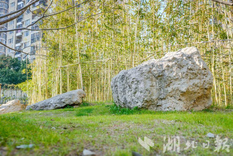 “建设之初,我们巧妙利用场地内的建筑垃圾与废土,因地制宜地将其在场内完成转化。”武昌区城管执法局绿化队相关负责人介绍,工作人员挑选大小适中的混凝土块砌成挡土墙,既消除场地高差,又筑牢公园地基;碎石碎砖被收集作为地面铺装垫层,节约建设成本;体型较大的混凝土块经仿石漆翻新,成为公园内独具工业美学的特色“景石”。