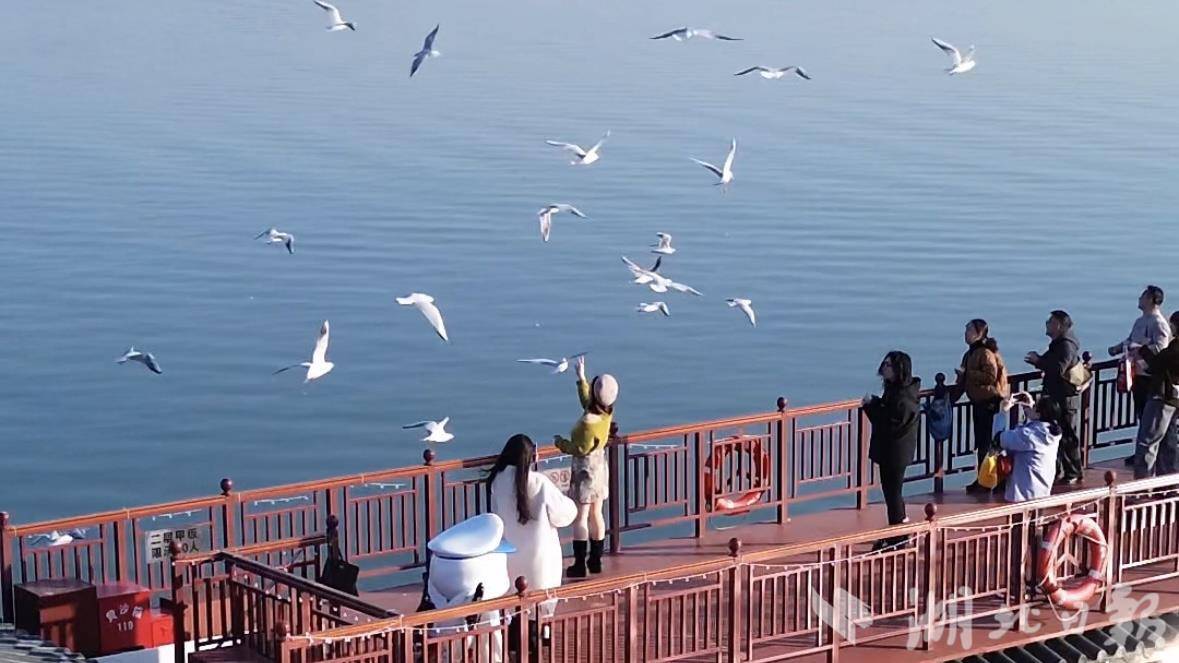 游船二层甲板上,游客李女士举着相机不断调整角度,镜头里红嘴鸥掠过湖面的身影与远处的“东湖之眼”相映成趣。“以前只在海边见过海鸥,没想到在内陆武汉能有这样的体验!”她兴奋地分享,自己是刷到社交平台上海鸥伴飞游船的视频专程而来,“它们一点都不怕人,最近的时候离我只有两三米,红嘴白翅在阳光下太治愈了,这趟武汉之行完全超出预期”。