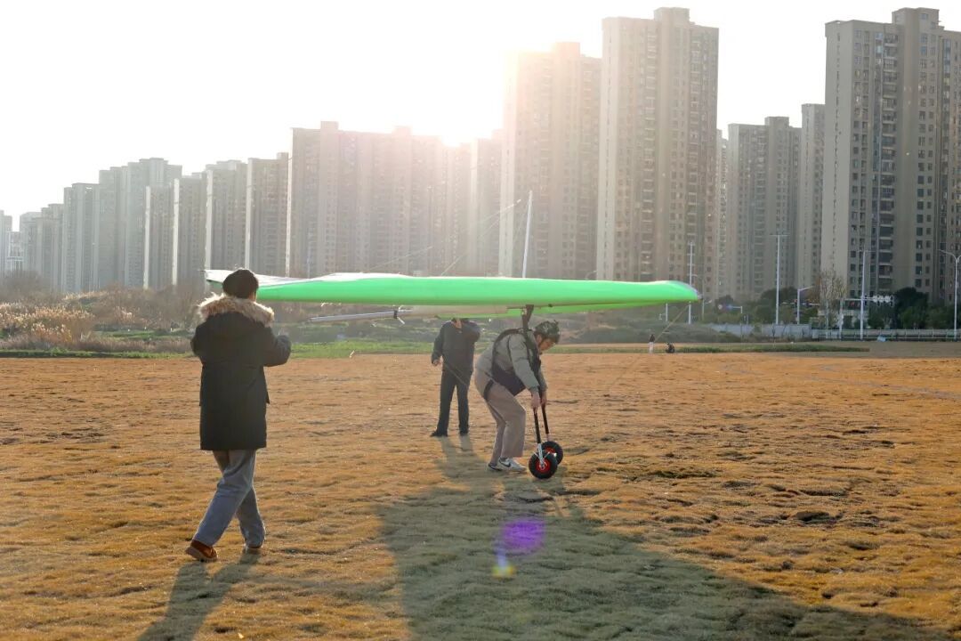 记者来到营地探访时,恰逢工作人员正在场地内进行轻型固定翼运动飞机测试。吸引得不少周边散步的市民驻足围观,大家纷纷拿出手机拍照记录,现场不时传来阵阵惊叹声。“没想到在家门口就能看到这么酷炫的飞行器测试,太惊喜了!”家住附近的市民王女士笑着说道。