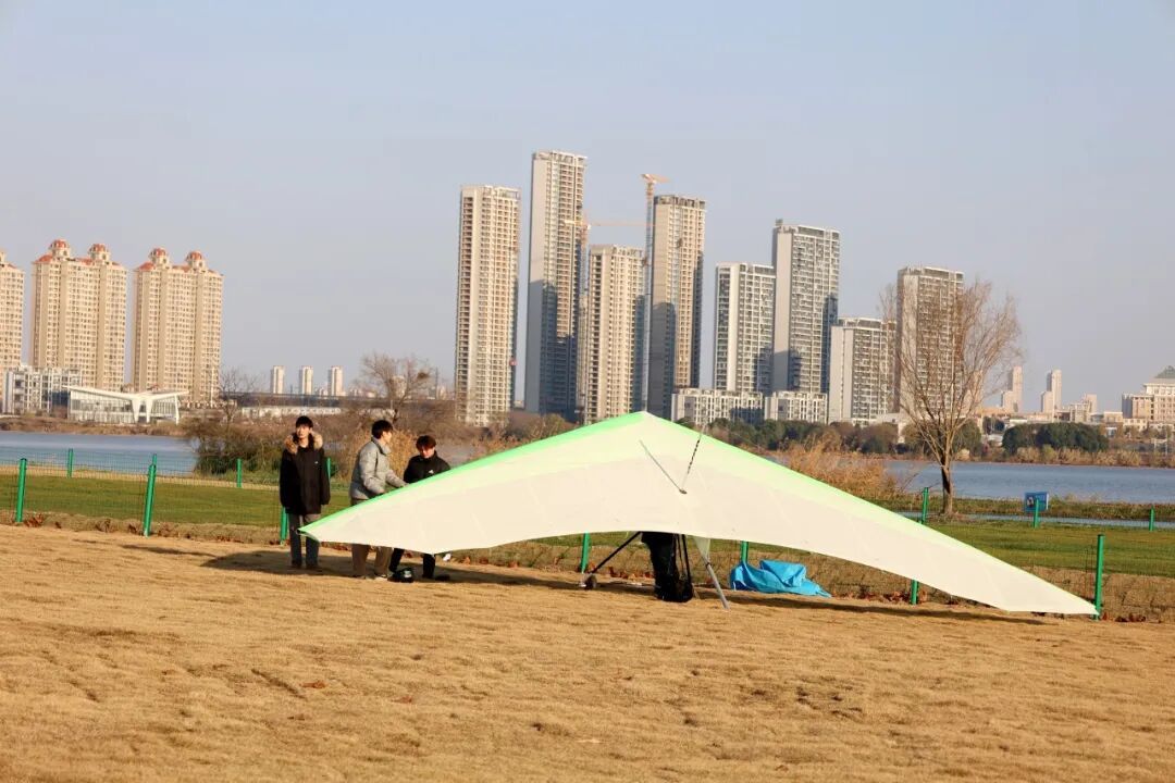 驱车行驶至青菱湖西岸青菱河路边,一片开阔舒展的草地豁然映入眼帘。即便时值冬日,暖阳洒落间,仍有零星绿意点缀其间,勾勒出别具一格的冬日景致。漫步营地,微风裹挟着青菱湖的湿润气息拂面而来,波光粼粼的湖面与广袤的草地相映成趣,勾勒出一幅自然与活力交织的生态画卷。