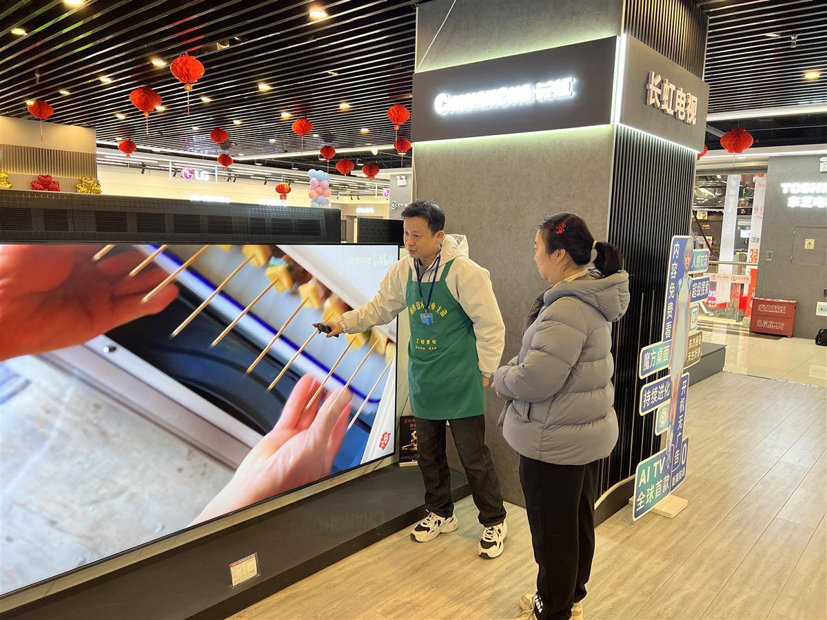 “马上要过年了,买个大电视,家里好一起看春晚!”潘女士高兴地说,她已多次到店询问和挑选心仪的电视,当店员今天通知她家电以旧换新补贴今日开始实施后,她第一时间就到店购买,“国家政策好,如果看到合适的型号,今年还会用以旧换新补贴再买个手机。”