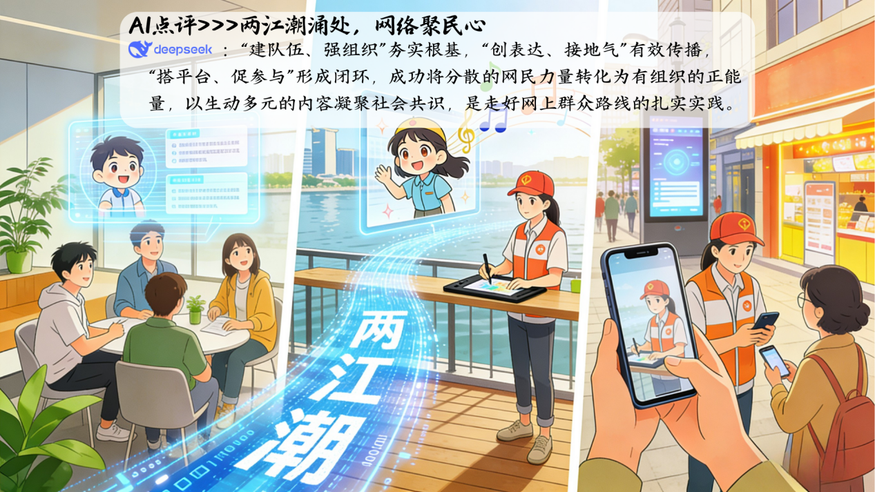宜都创新组建“两江潮”网络文明志愿服务队,通过“个人+团队”“线上+线下”“创作+引导”相结合的“3+3”工作机制,将分散的网民力量凝聚成有组织的正能量阵地。为进一步夯实组织基础,宜都还打造了“两江潮”网评实践基地,有效推动了网络正能量生产从分散、自发,向组织化、专业化转型升级,为深入践行网上群众路线提供了坚实的组织保障和人才支撑。