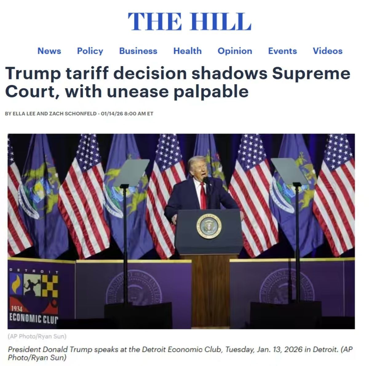 在美国联邦巡回上诉法院和美国国际贸易法院分别裁定美国政府一揽子关税政策违法后,美国政府向联邦最高法院提出上诉。联邦最高法院原本宣布将在1月9日就关税政策合法性作出裁决,但当天并未公布裁决结果,而是宣布将裁决日期推至1月14日。