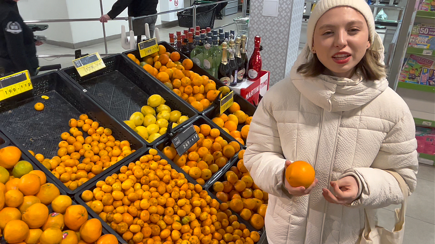 俄罗斯大诺夫哥罗德市 市民玛利亚正在挑选南漳柑橘