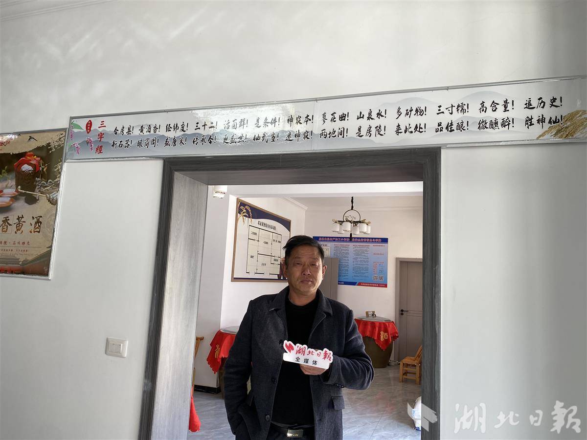 “邓家黄酒”坊已传承五代人,为传播房县黄酒文化,邓平在门楣处挂着自创的“黄酒三字经”。面对湖北日报全媒记者的镜头,他一口气背诵了下来——