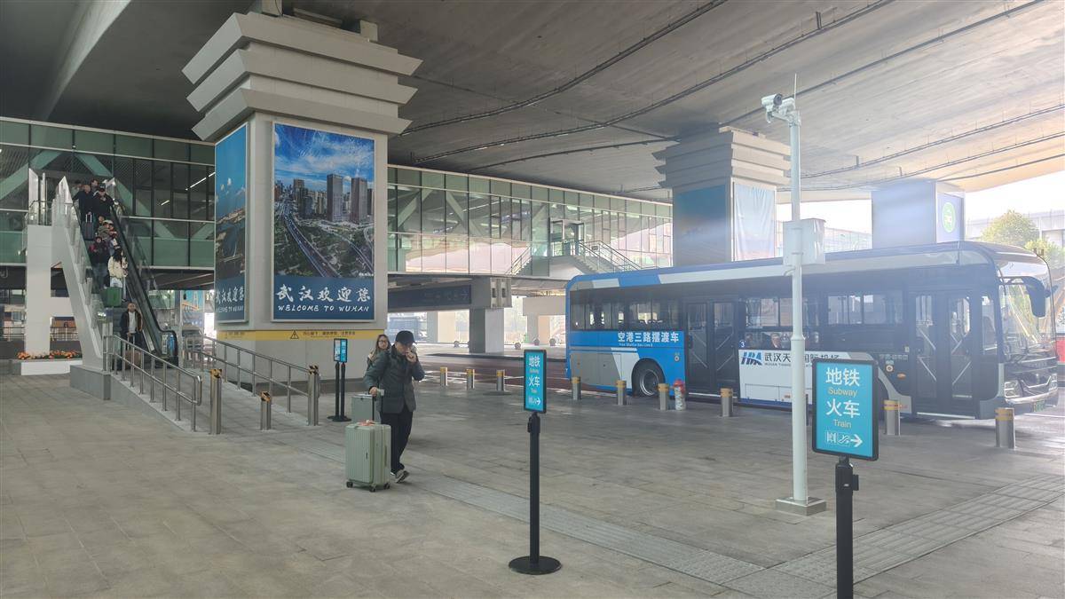 2024年4月15日,天河机场T2航站楼重新投入使用。从这里抵达武汉的旅客,要前往天河机场交通中心转乘地铁或者高铁,可以选择3种方式:一是步行至T3航站楼,再通过连廊进入交通中心,大约耗时20分钟;二是乘坐付费摆渡车抵达T3航站楼,再步行至交通中心,大约耗时10分钟;三是在T2航站楼外乘坐免费摆渡车至T3航站楼地面层,走楼梯通过连廊进入交通中心。