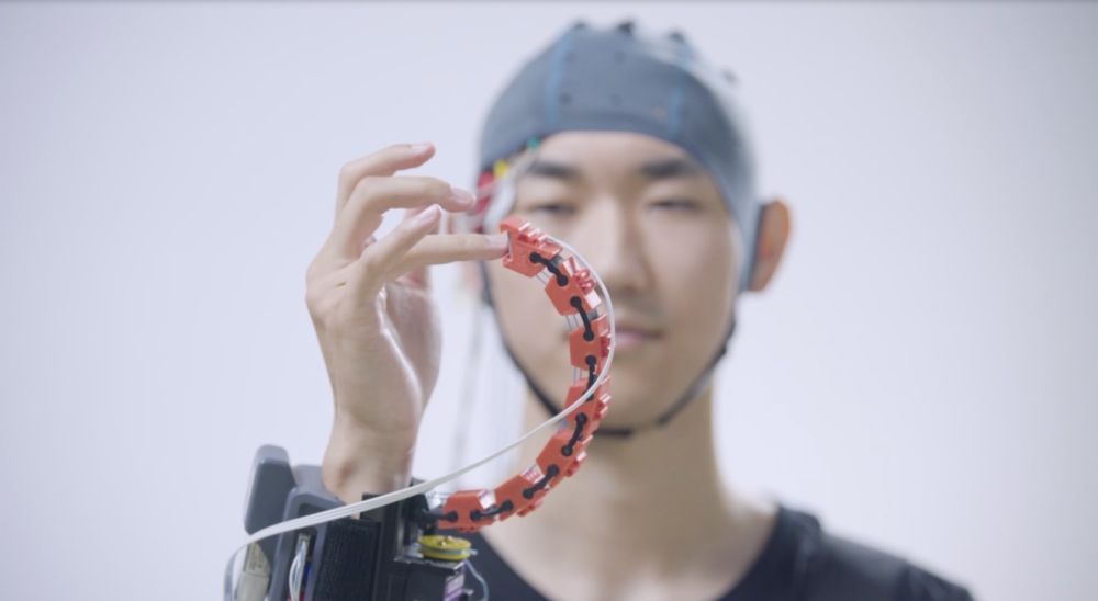 这款由脑机海河实验室团队研发的手指穿戴设备,被称为“神工—灵犀指”。据介绍,用意念控制该设备,可以配合人手完成辅助抓握,唤醒患者的功能障碍中枢与外周神经系统,助力手部运动功能康复。脑机接口通过采集脑部神经信号,转换成特定指令。该技术能够在大脑与外部设备之间创建连接,实现“脑”与“机”之间的信息交换。