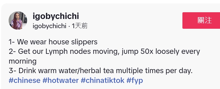 一场“中式生活”的全球模仿秀华裔博主雪莉的视频成了这场风潮的起点。她在视频中将冷幽默与文化洞察相结合,向粉丝介绍冬季养生、中医理念和华人饮食习惯:喝热水、在家穿拖鞋、农历2月17日是马年......