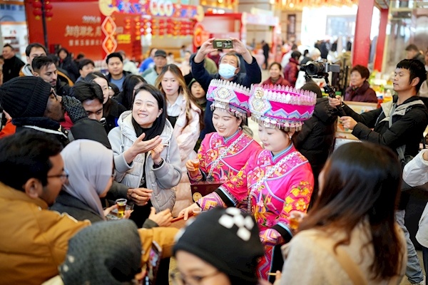 看非遗节目、打非遗年货、在直播间与大V面对面互动……1月17日,2026年首场“知音湖北·超级文旅日”暨第五届湖北非遗嘉年华活动,在武汉长江新区华中贸易服务区举行,同期开展的非遗大师讲堂、荆楚戏曲荟萃、荆楚非遗好物展销、各市州非遗展演等活动,当天吸引数万市民赏非遗、逛市集、打年货。 楚天都市报极目新闻记者简俊晖 彭唯 李辉 通讯员鄂文旅摄影报道