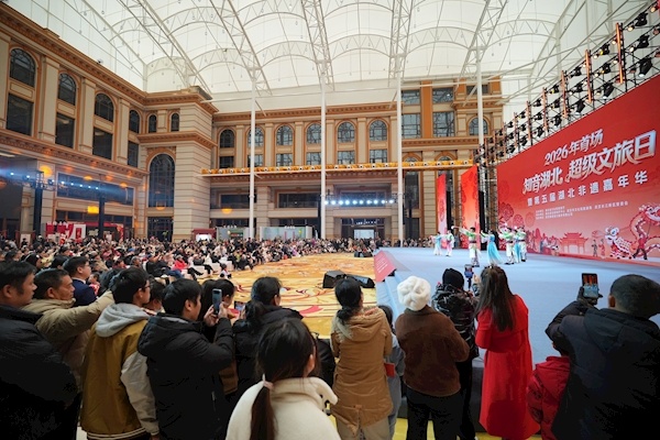 楚天都市报极目新闻讯(记者简俊晖 彭唯 通讯员鄂文旅)看非遗节目、打非遗年货、在直播间与大V面对面互动……1月17日,2026年首场“知音湖北·超级文旅日”暨第五届湖北非遗嘉年华活动,在武汉长江新区华中贸易服务区举行,同期开展“荆楚非遗国际会客厅”揭牌、荆楚非遗品牌发布及资源对接、非遗大师讲堂、荆楚戏曲荟萃、荆楚非遗好物上线展销、各市州非遗展演等活动,当天吸引数万市民赏非遗、逛市集、打年货。