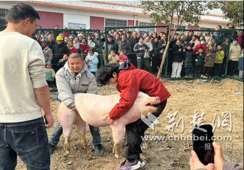 本届年货大集坚守“便民、惠民、乐民”初心,在保障年货供应充足、价格稳定的基础上,精心划分民俗体验区、年货展销区、文艺表演区等多个功能区域,全方位满足群众需求。年货展销区里,吴师傅盘龙菜、本地土蜂蜜、仙之灵食用菌、野生葛根粉等荆楚特色农产品琳琅满目,吸引不少市民驻足选购;民俗体验区更是热闹非凡,“蒙眼抓鸡鸭”引得围观群众阵阵欢笑,“趣味捉猪”项目让男女老少争相参与,浓厚的乡土情趣将现场气氛推向高潮。
