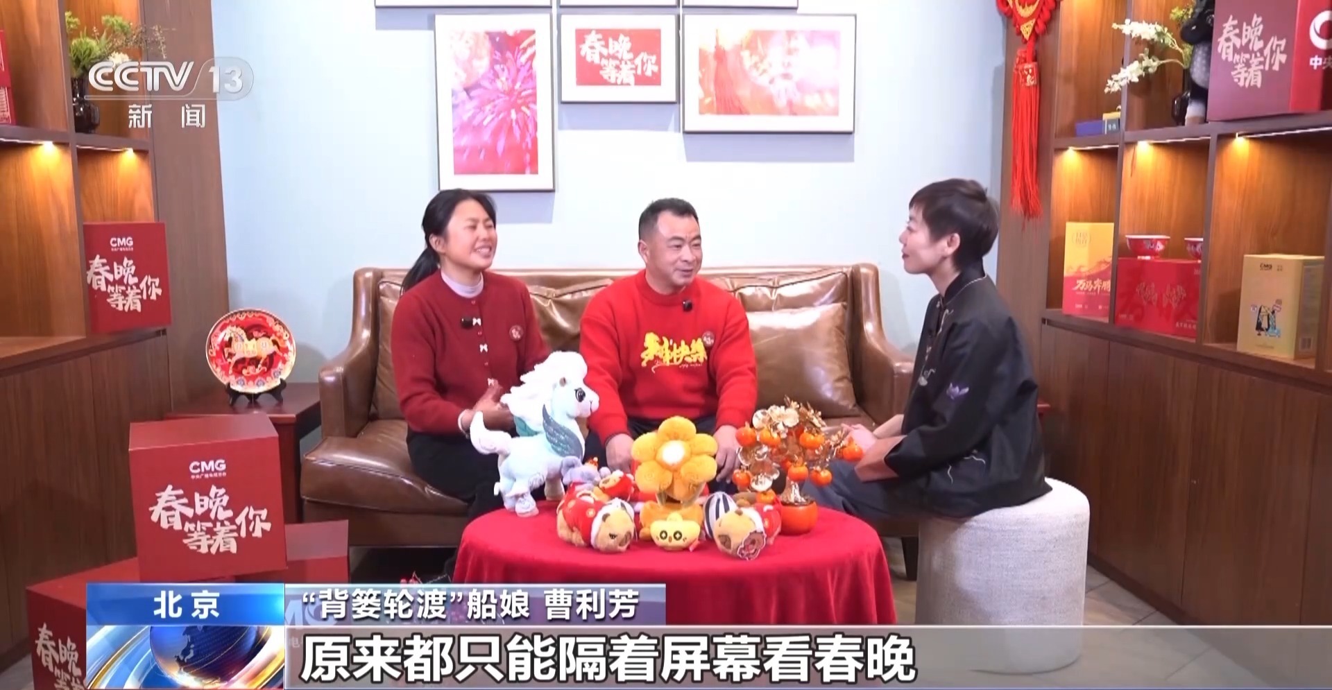 “背篓轮渡”船娘 曹利芳:当时我们在船上做卫生,突然给了一个惊喜,说要邀请我们到总台看春晚。原来都只能隔着屏幕看,现在能来到现场,特别开心。