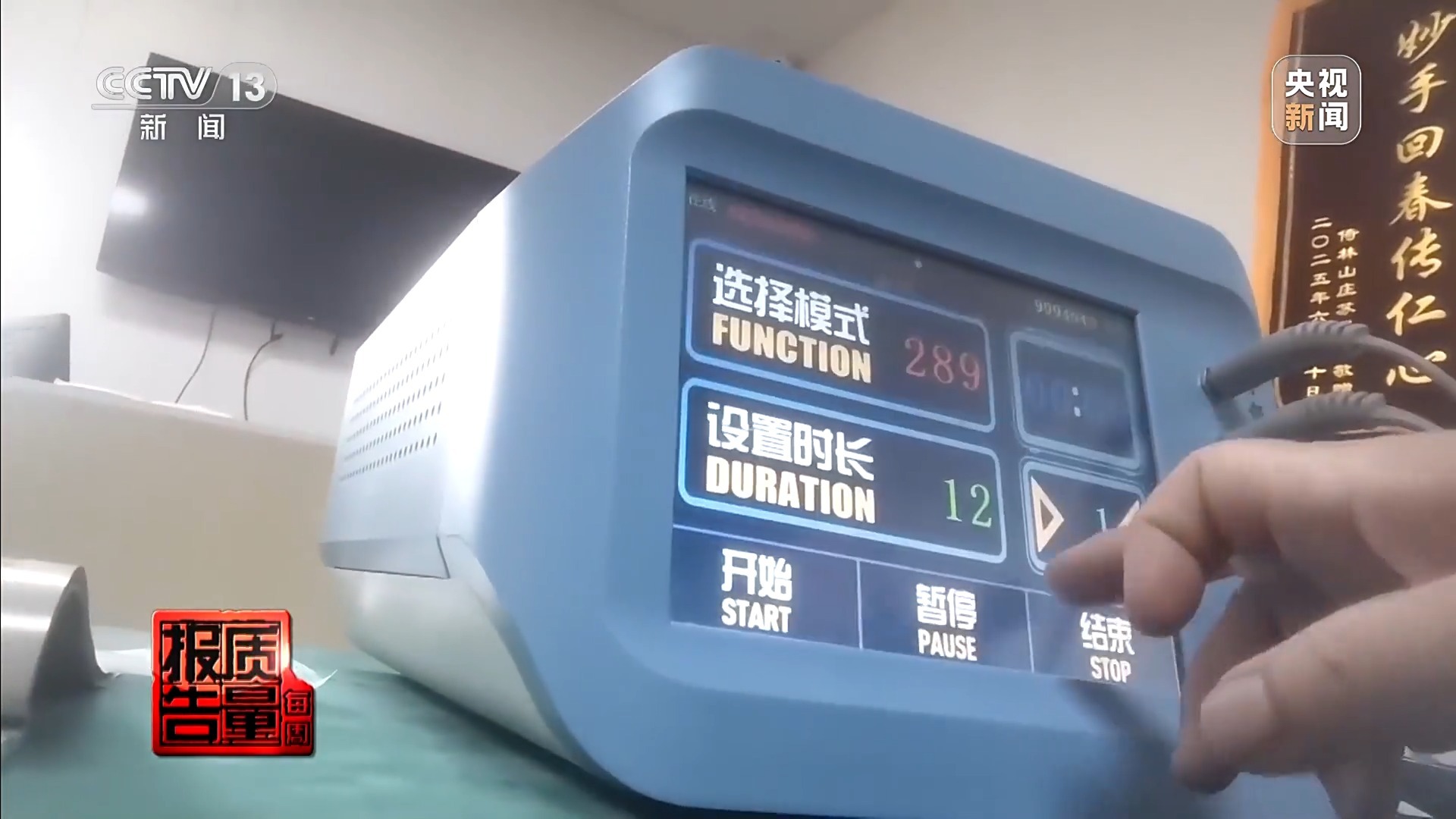 记者注意到,在店里的大屏幕上,反复播放这款仪器的治疗效果。