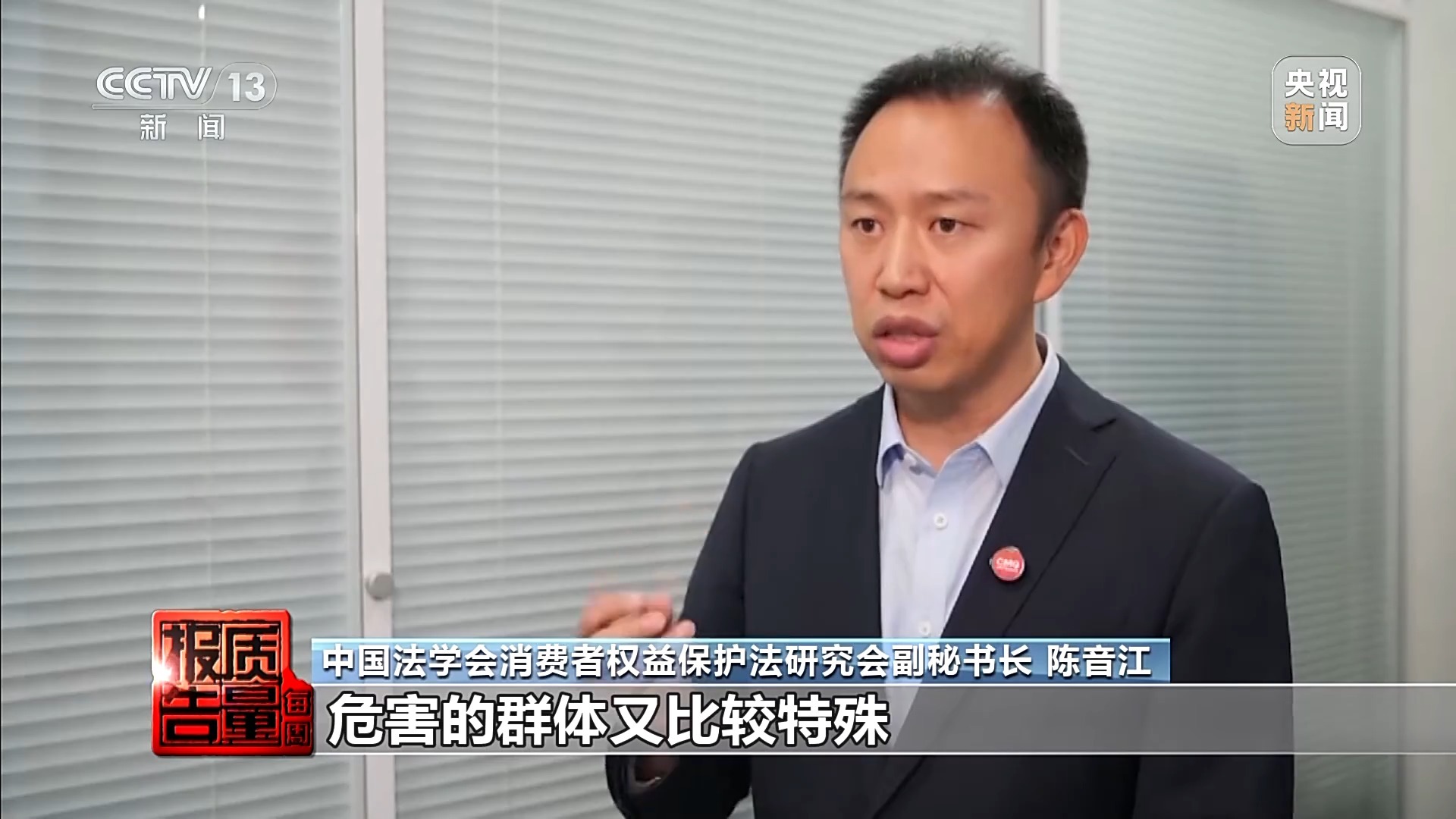 中国法学会消费者权益保护法研究会副秘书长 陈音江:危害的群体又比较特殊, 是特殊的老年弱势群体。所以这样的问题确实要加强监管,多个部门要发挥联合监管的机制,严肃地去查处,要让他依法去承担相应的法律后果, 真正要发挥监管的威慑力。