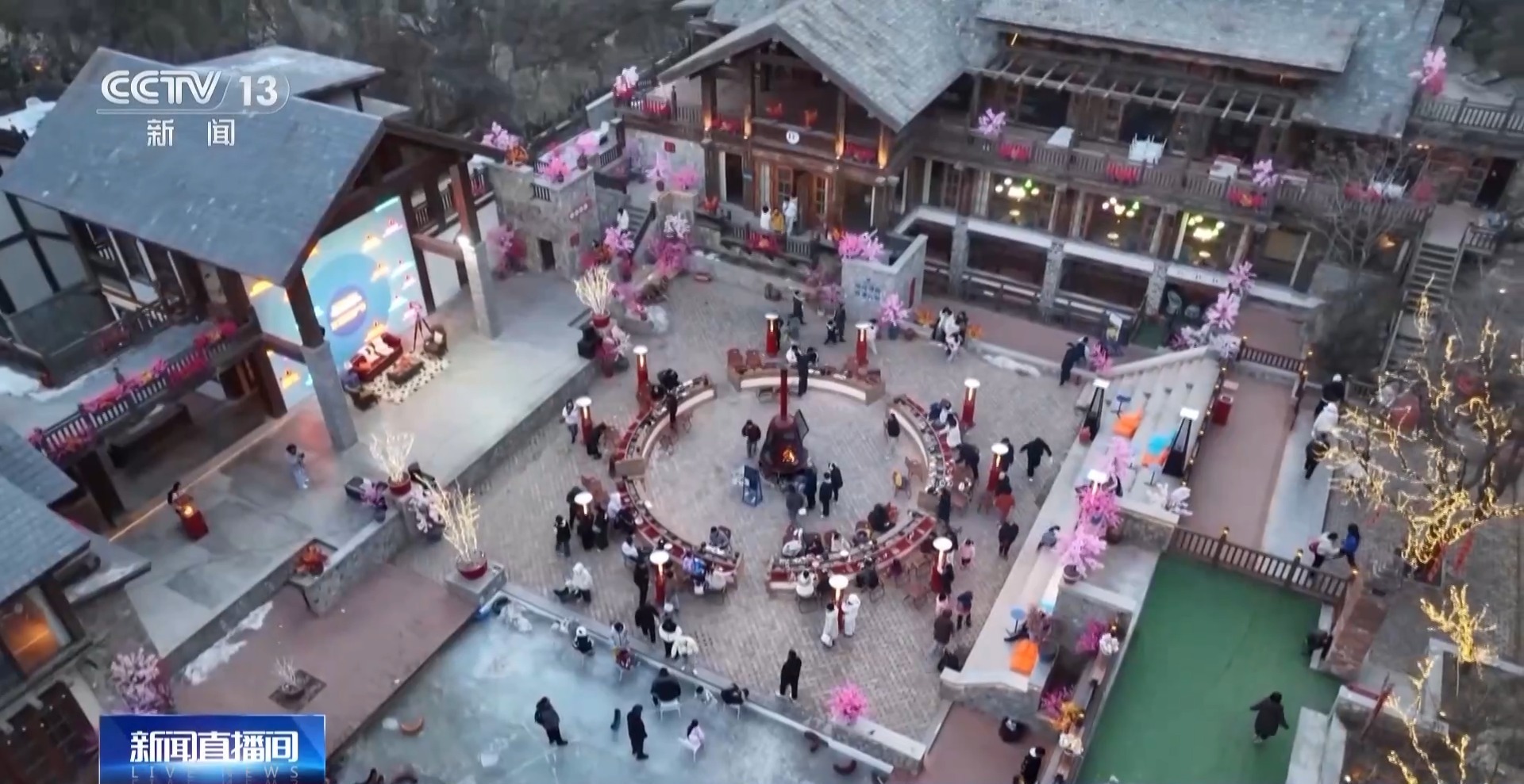 山东济南的九如山以独特的峡谷地貌和寒冷气候,呈现出独具特色的冰瀑景观。冰柱垂挂、冰挂密布,吸引了不少游客前来赏景、打卡,感受冬日峡谷的独特魅力。有的景区将冰雪景观与炉火木屋巧妙融合,给游客提供沉浸式冬日旅游新场景。