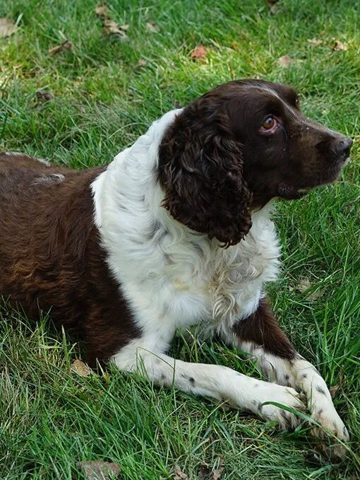 雄性英国史宾格犬,2016年9月出生,是一只搜爆犬,身体状态良好,性格活泼开朗,服从性较好,擅长建筑物搜爆、车辆搜爆,综合成绩合格。