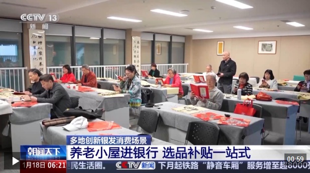 记者来到一家银行网点时,阵阵墨香扑面而来,附近的老年人正在这里上书法课。除了丰富的老年学堂活动,一旁的适老化样板房更具吸引力,智能跌倒探测仪、居家安防设备、便捷助行工具等各类适老产品有序陈列,还原真实居家场景,方便老人直观体验。