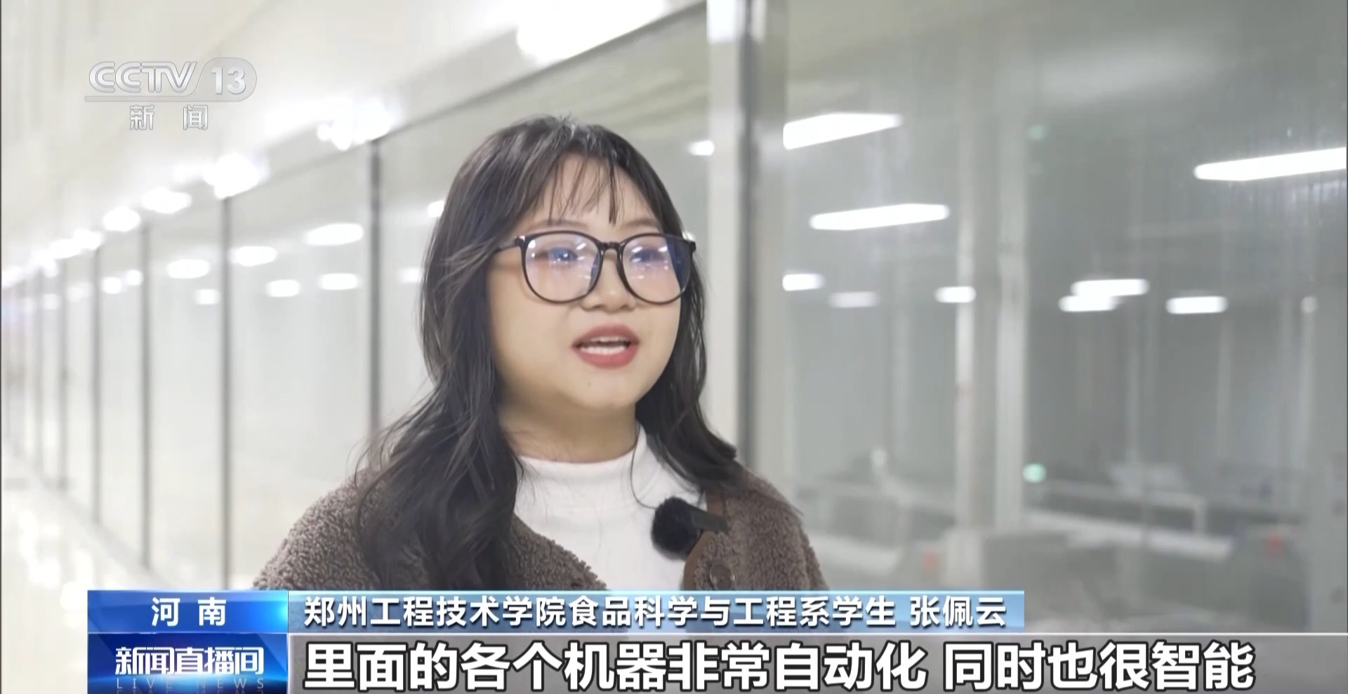 郑州工程技术学院食品科学与工程系学生 张佩云:里面的各个机器非常自动化,也很智能,这让我能够直观地感受到,对于食品工业的科技有了更多的信心。