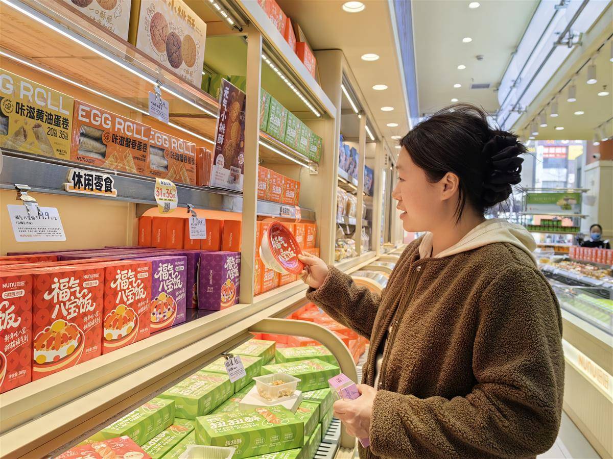 顾客在妞妞门店挑选八宝饭。(湖北日报全媒记者 张慧华 摄)
