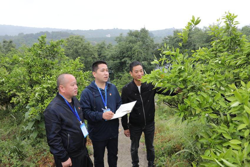丹江口市深入推进对村巡察工作,巡察干部深入柑橘种植基地,向果农详细了解惠农补贴发放、技术帮扶等政策落实情况,实地查看柑橘长势与产业基础设施,确保乡村振兴政策在基层落地见效。图为巡察组在凉水河镇江口村柑橘基地了解有关情况。(丹江口市纪委监委供图)