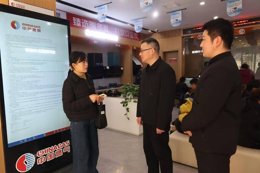 近日,孝感市纪检监察干部到中亚燃气公司营业厅,通过实地走访办事群众,了解监察建议整改落实情况。(孝感市纪委监委供图)