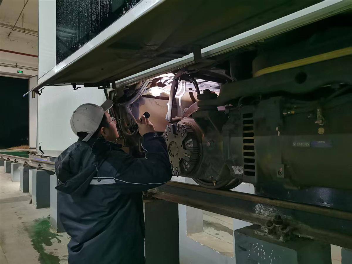 车辆维保团队检修电弓、制动系统等关键部件